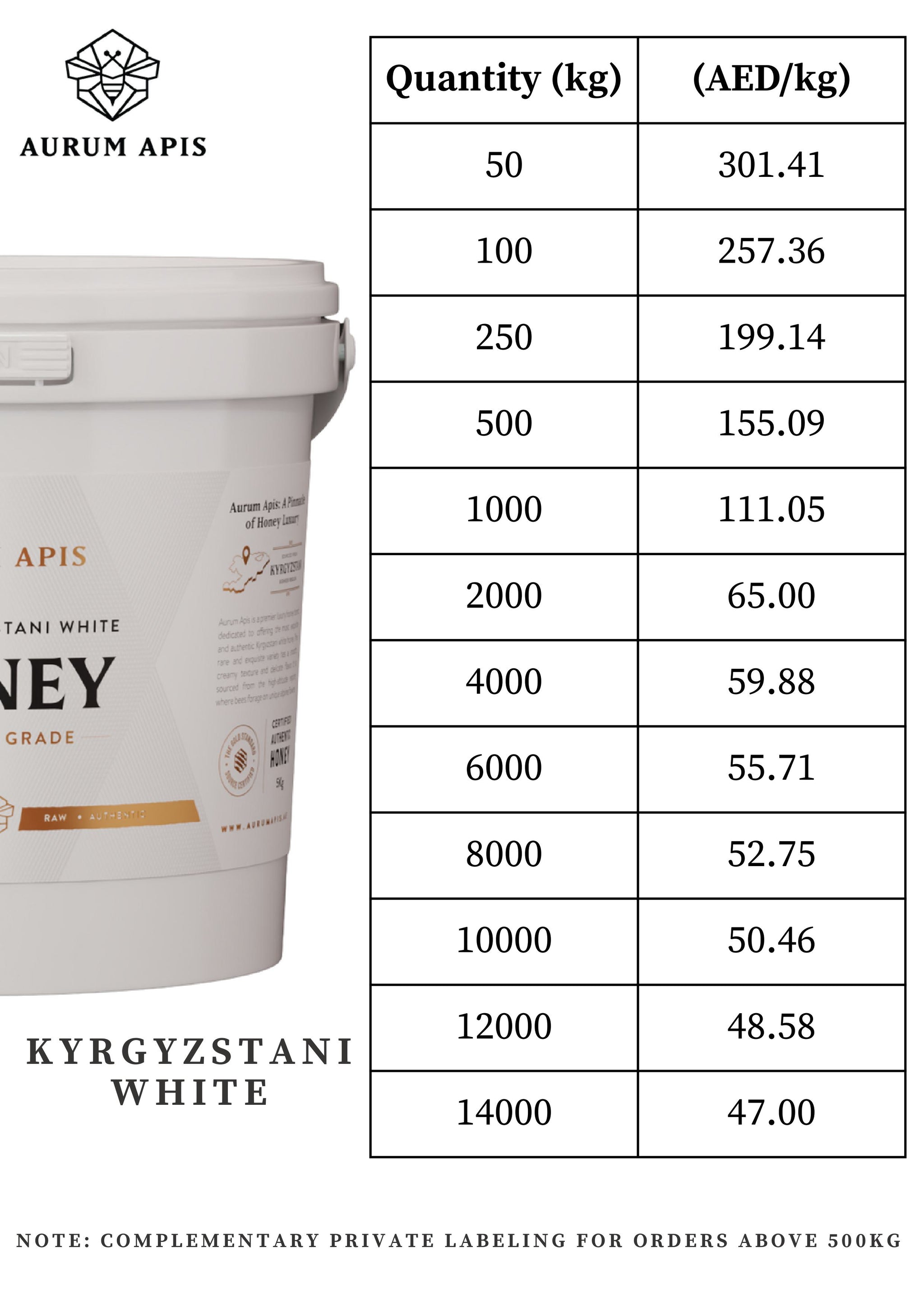 Type: Premium Grade, white Kyrgyzstani, Raw honey.