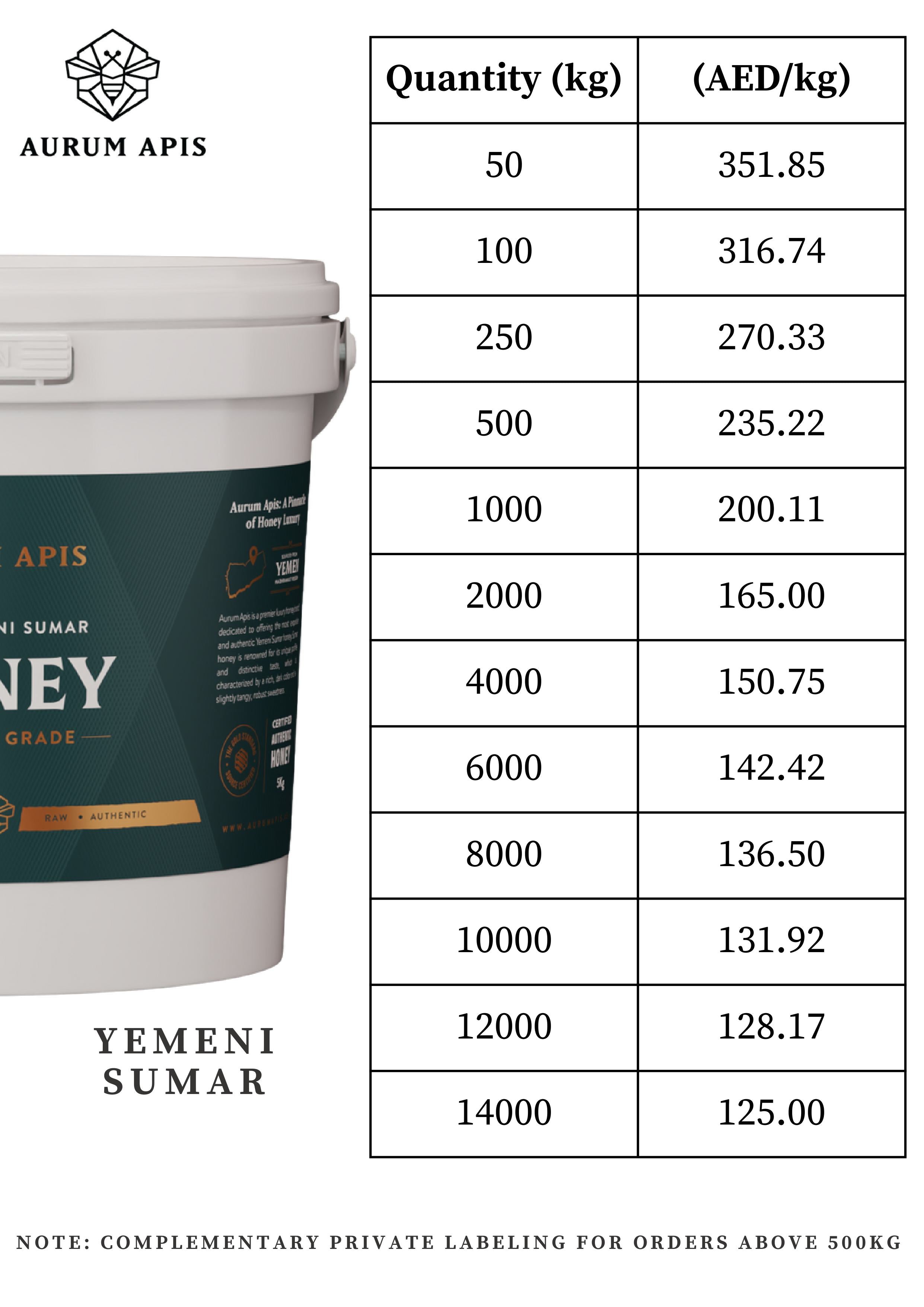 At Aurum Apis, we prioritize quality and luxury. This honey is raw and organic, maintaining its natural properties and delivering unmatched wellness benefits. The Yemeni Sumar Honey is not just a treat—it’s a journey into the heart of Yemen’s finest honey traditions.